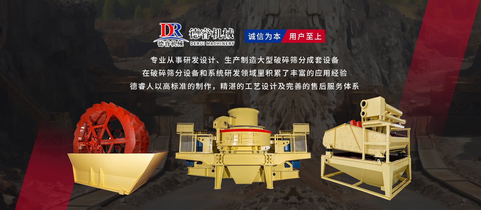德睿重型機械是從事研發(fā)設(shè)計、生產(chǎn)制造大型破碎篩分成套設(shè)備的現(xiàn)代高新技術(shù)企業(yè)集團,公司總部座落于廣東工業(yè)重鎮(zhèn)、韶關(guān)市湞江區(qū)工業(yè)園,有現(xiàn)代化辦工場地、研發(fā)中心和標準化廠房,多種大型機械加工設(shè)備10余套,現(xiàn)公司技術(shù)人員40余名。 公司在主要城市均設(shè)有辦事處,配有豐富實戰(zhàn)經(jīng)驗的設(shè)計工程師,方便為各地客戶現(xiàn)場分析、配置生產(chǎn)線并提供及時、周到的售后服務。 目前產(chǎn)品已覆蓋東南亞、中東、非州、歐州等多個國家和地區(qū),并獲得客戶的好評。公司已成為主要的專業(yè)礦山設(shè)備,工業(yè)磨粉、碎石制砂設(shè)備的生產(chǎn)和出口基地之一。 “誠信為本,用戶至上”德睿人以高標準的制作,精湛的工藝設(shè)計及完善的售后服務體系在破碎篩分設(shè)備和系統(tǒng)研發(fā)領(lǐng)域里積累了豐富的應用經(jīng)驗。借助在破碎行業(yè)的豐富經(jīng)驗,公司可向客戶提供碎石制砂生產(chǎn)線設(shè)計、安裝、調(diào)試等交鑰匙工程,同時承接破碎系統(tǒng)的爆破、裝運、破碎等生產(chǎn)運行總承包。